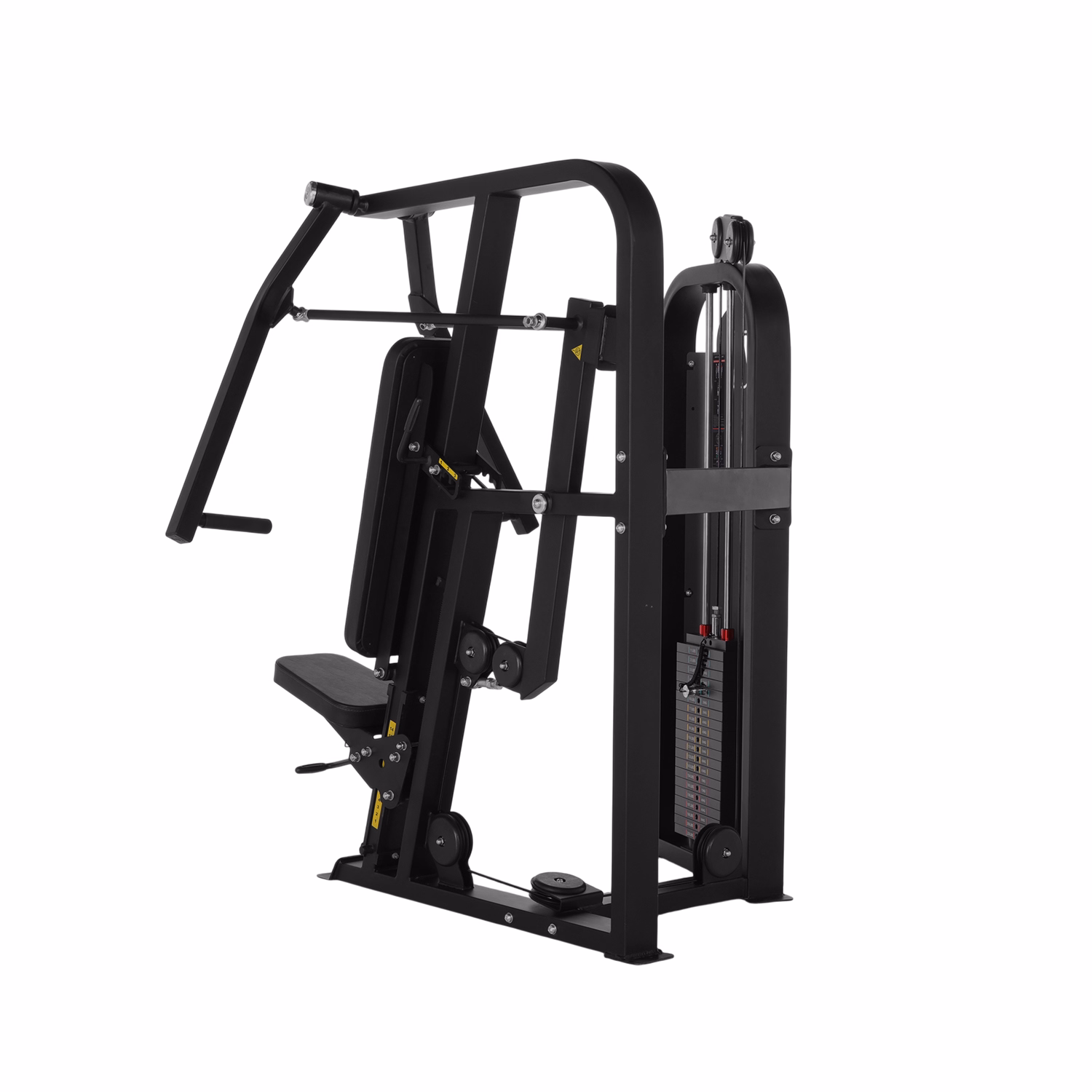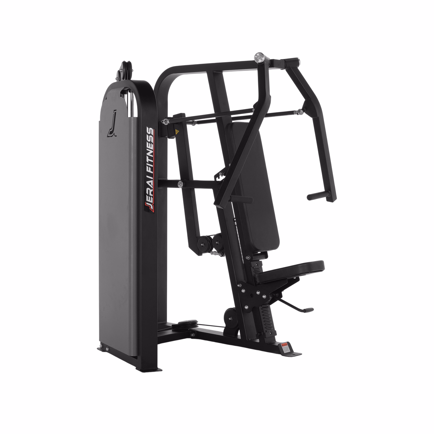 Bequemer Sitzträger in Ritzelanordnung von der Startposition aus. Mehrfach verstellbare Handgriffe für verschiedene Bereiche, und das Gewichtspaket eignet sich für einen größeren Kundenstamm. Die Jerai Fitness Vertical Chest Press bietet ein maximales Gewicht von bis zu 220 Pfund.