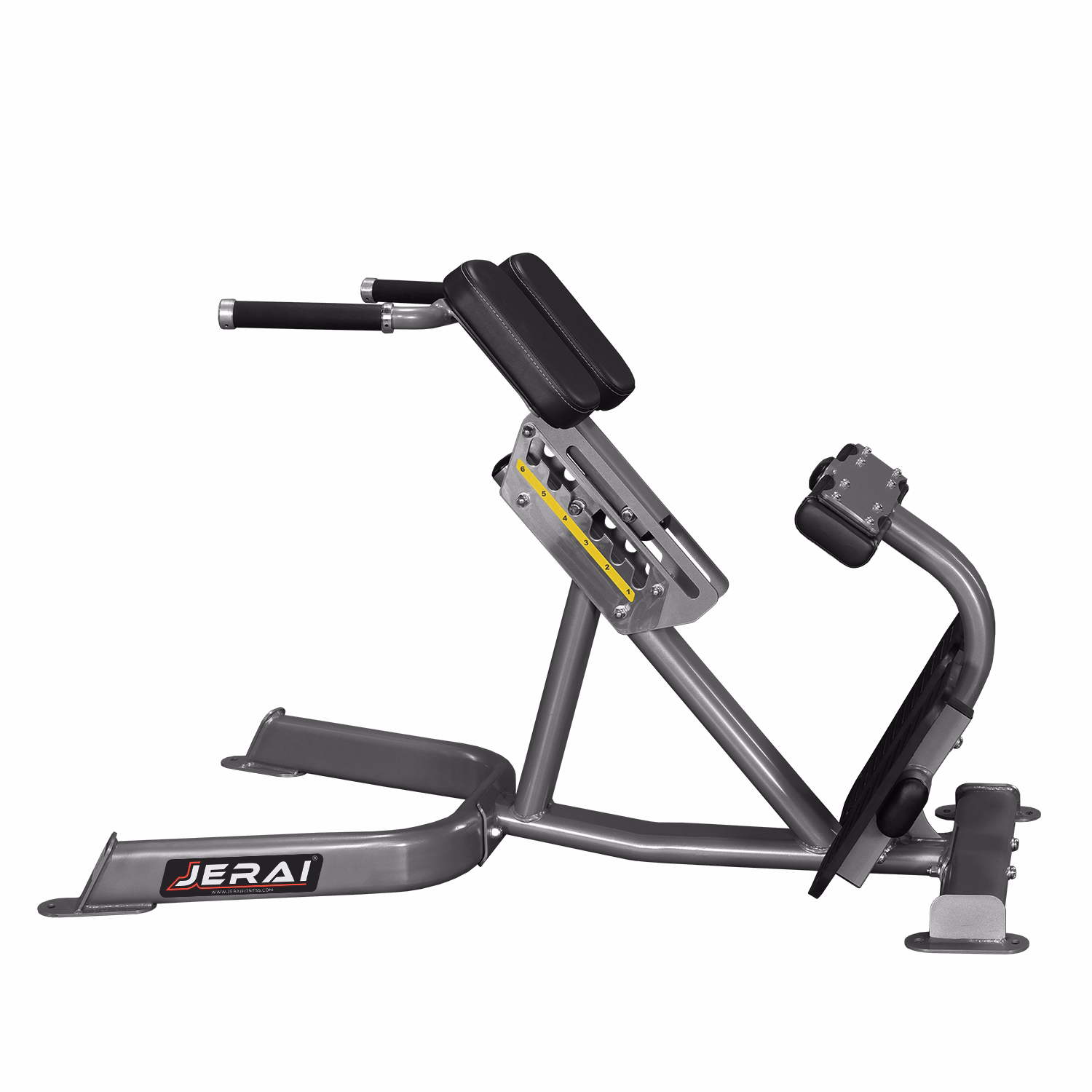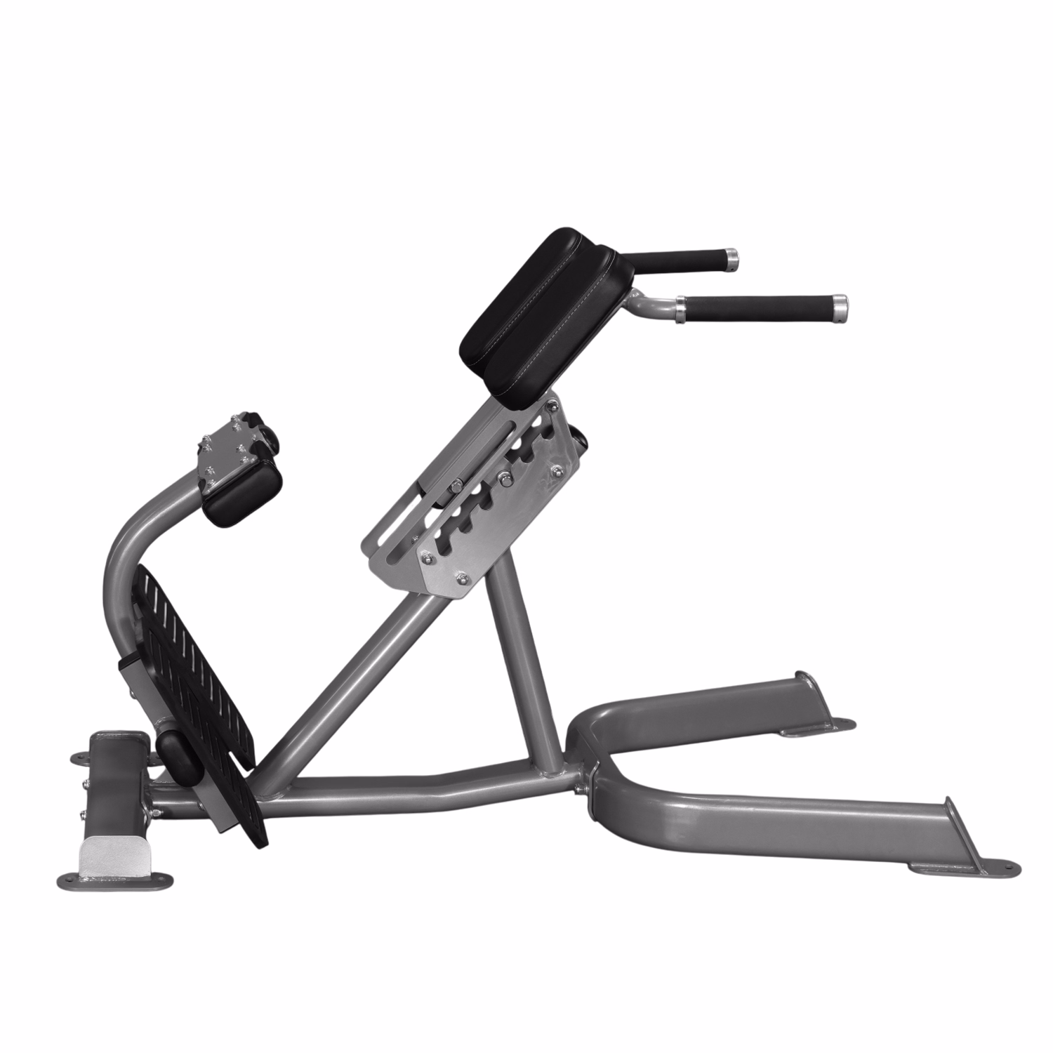 Unique design for spinal erector muscles in comfort and added safety. Dual adjustable thigh pad for effective positioning. Big non-skid high quality rubber foot platform for stability.