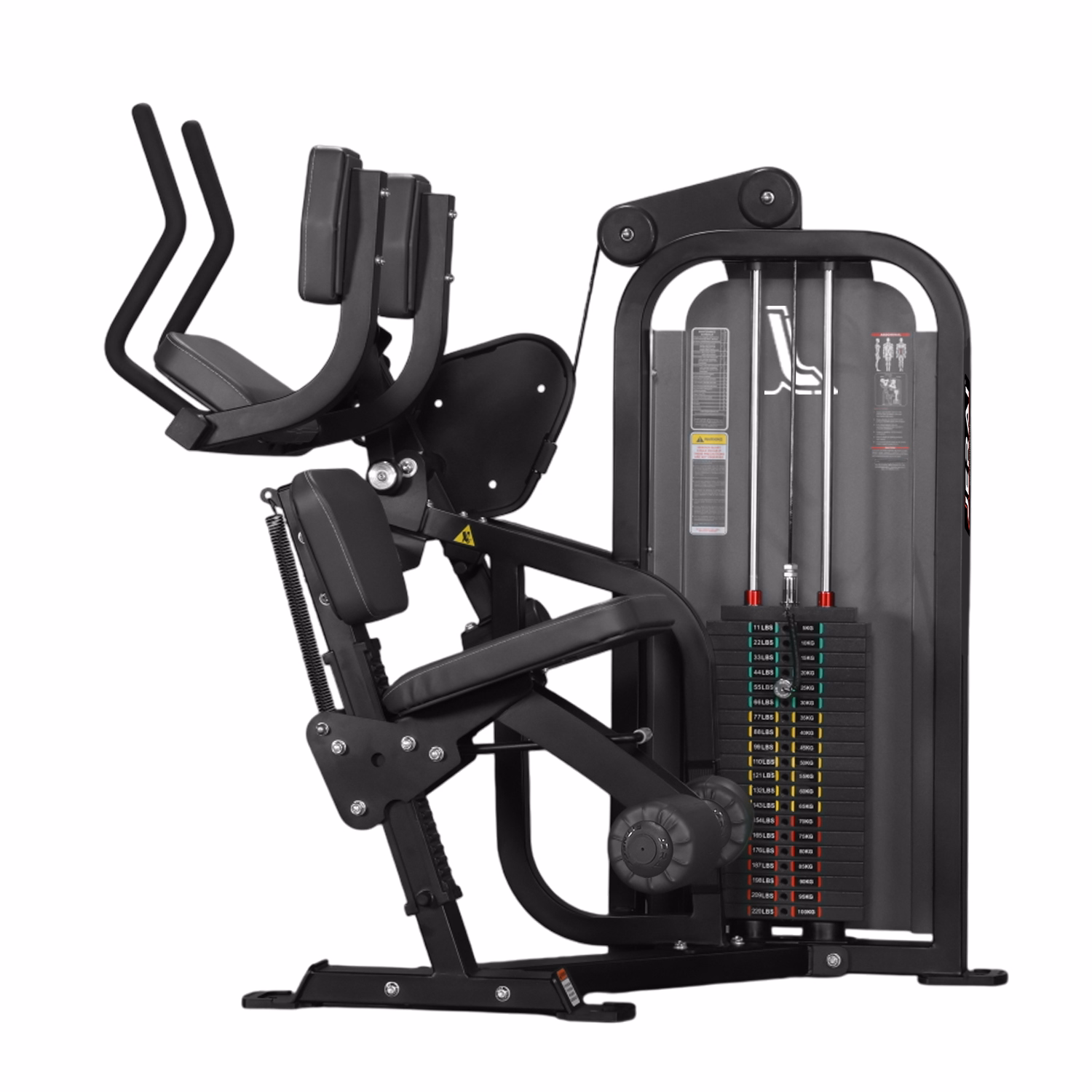 Esta máquina está diseñada para imitar un crujido en el suelo y, al mismo tiempo, apuntar a los músculos abdominales inferiores. La máquina se asegura de la alineación de los ejes del cuerpo para lograr una posición biomecánicamente correcta. El Jerai Fitness Abdominal proporciona un peso máximo de hasta 220 libras.
