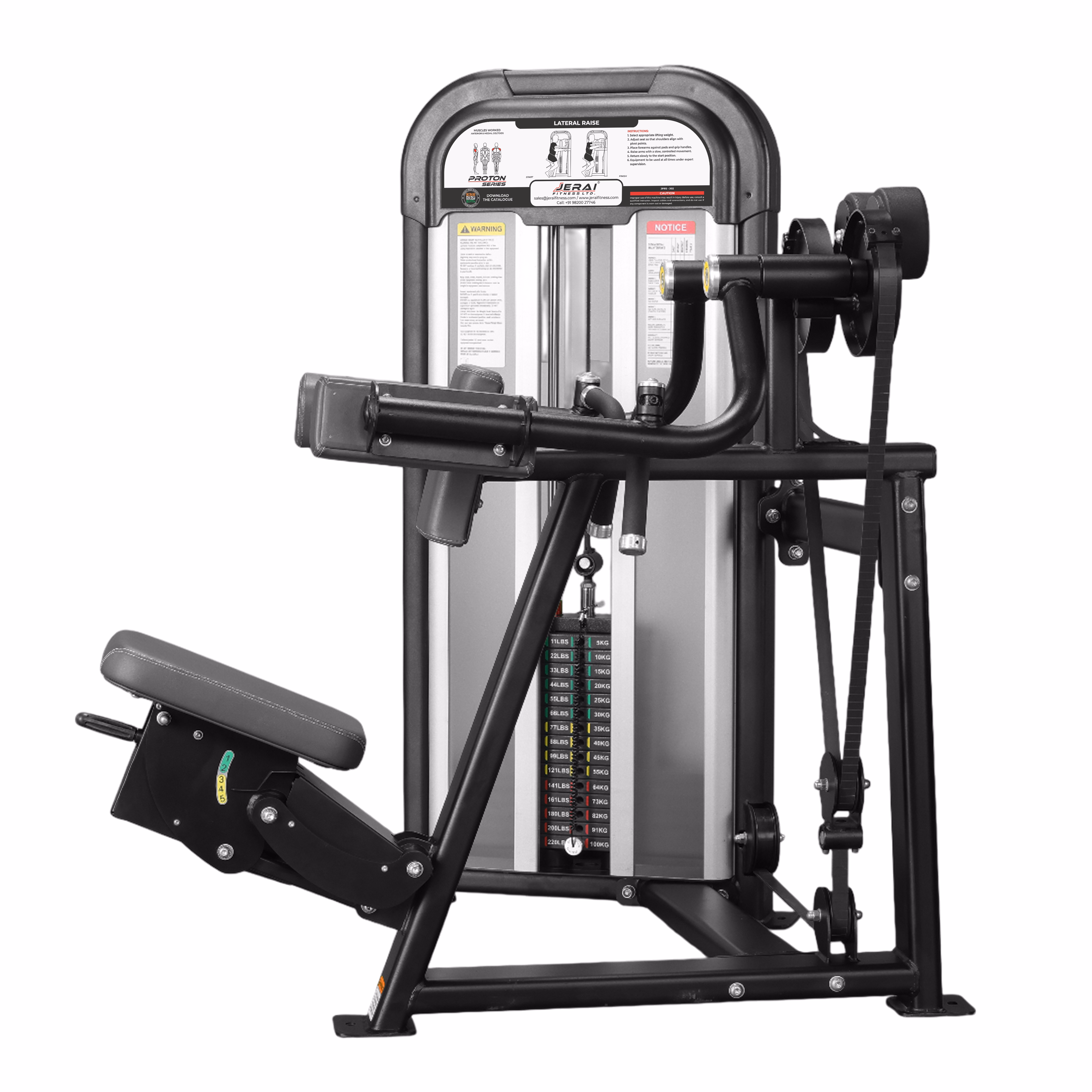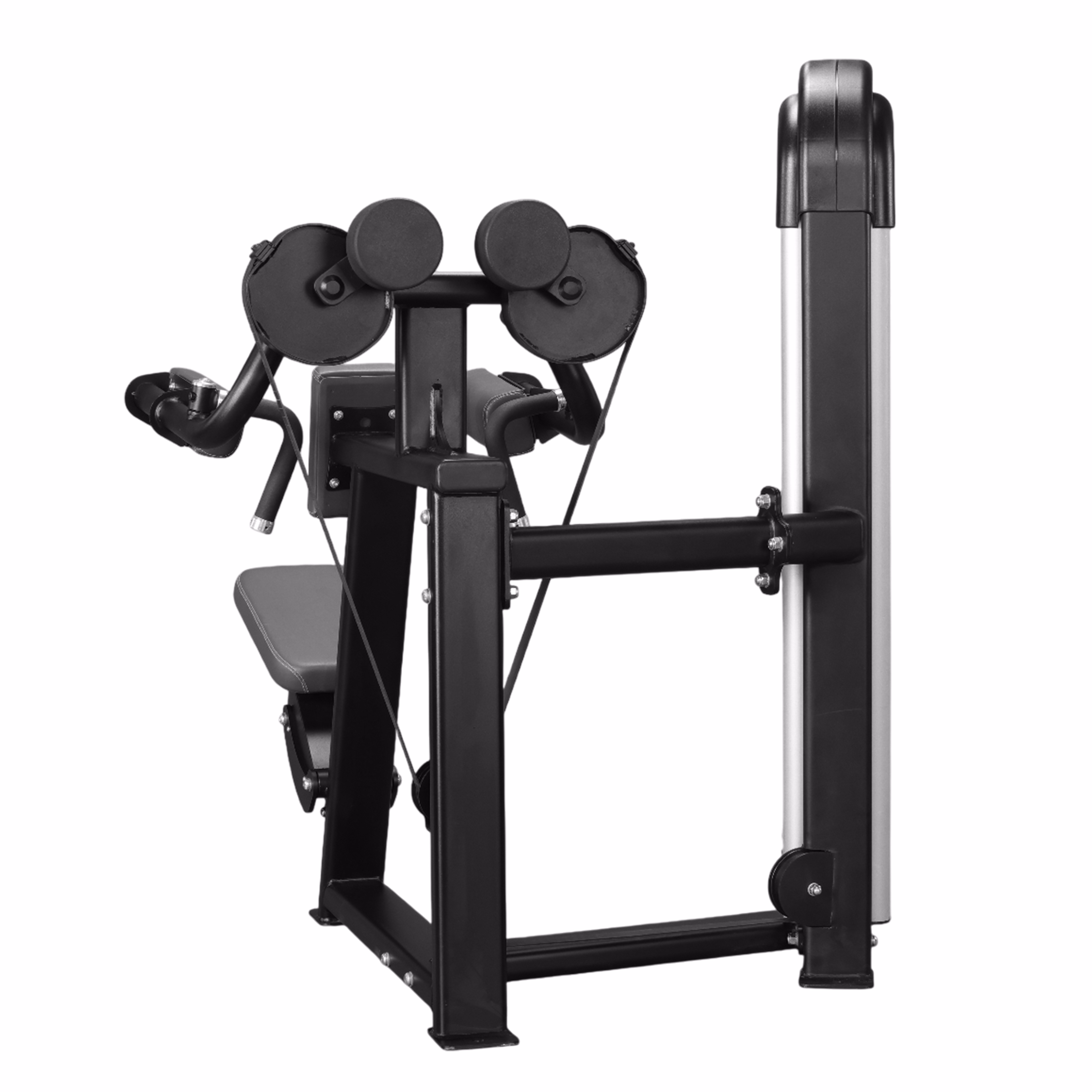 The Lateral Raise machine from the Proton Series is expertly designed to isolate and strengthen the deltoid muscles with precision. It features an adjustable seat and support pad to accommodate users of various heights while maintaining proper alignment and posture during movement. The angled handles are ergonomically positioned to promote a natural lateral raise motion, minimizing shoulder strain. Additionally, the soft-cushioned elbow supports enhance user comfort and stability, allowing focused, controlled repetitions. Built for commercial-grade durability and equipped with a smooth resistance system, this machine ensures efficient shoulder training with maximum safety and biomechanical accuracy.