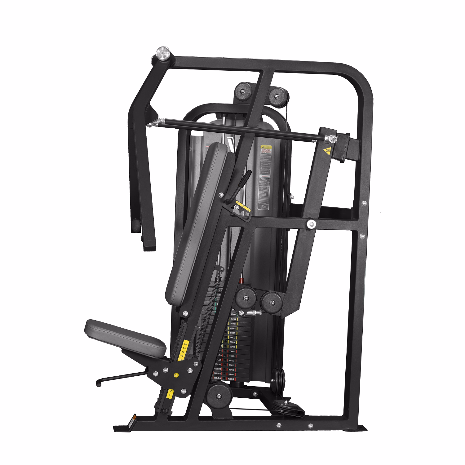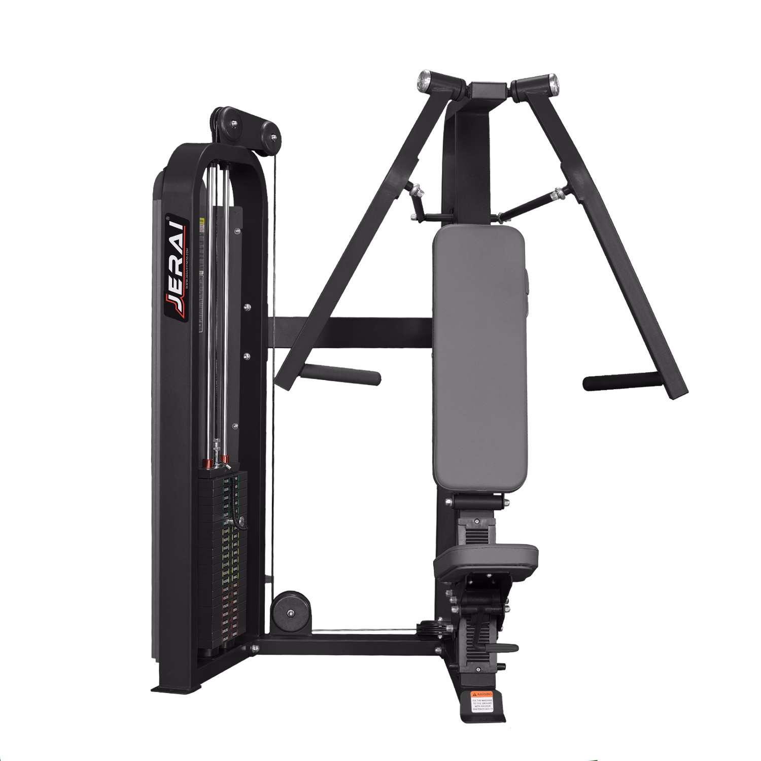 Comodo portapacchi con disposizione a pignone sin dalla posizione iniziale. Impugnature a più posizioni per diverse gamme e la pila di pesi si rivolge a una base di clienti più ampia. La pressa toracica verticale Jerai Fitness offre un peso massimo fino a 220 libbre.