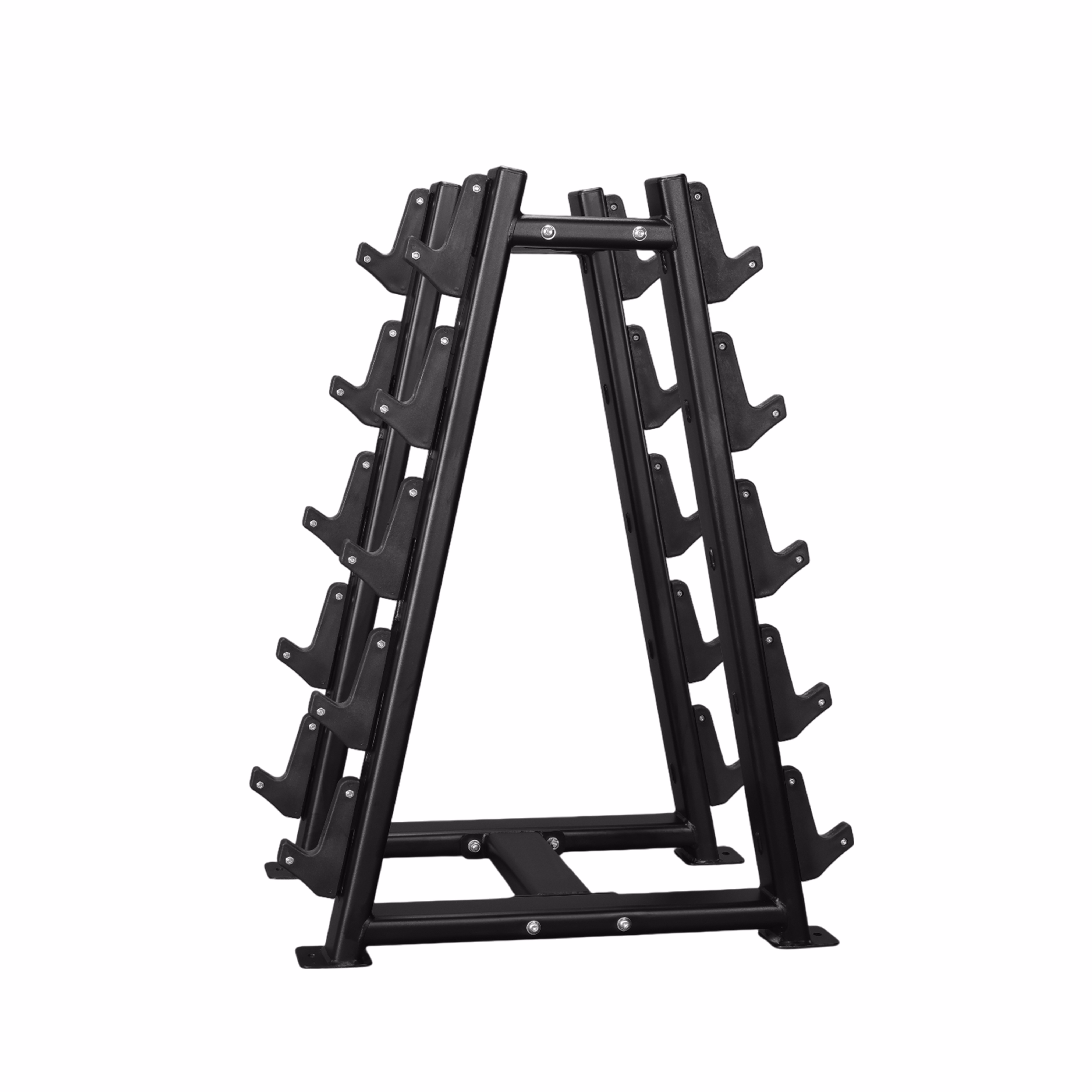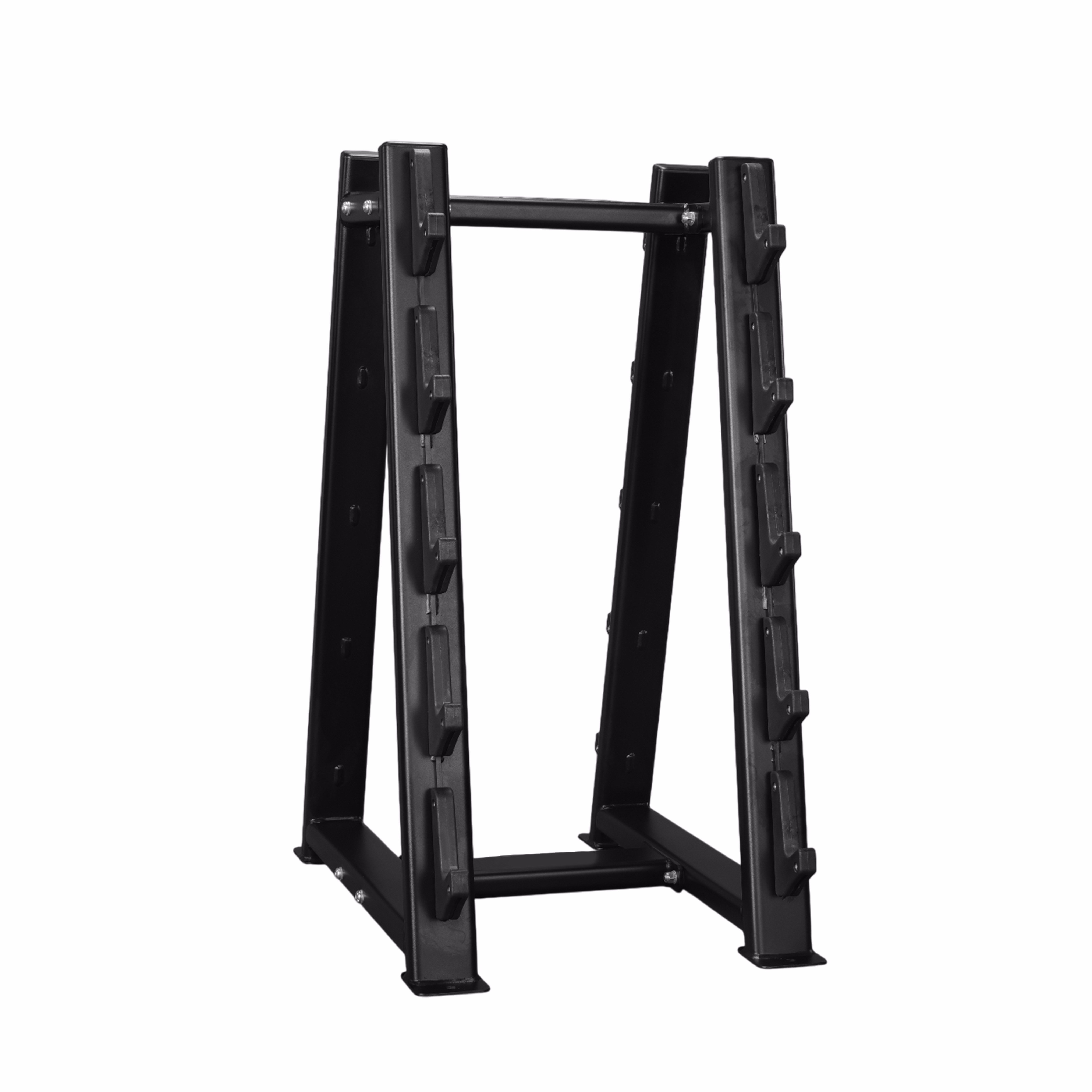 The BeautyBell Rack from the proton series is designed to organize fixed-weight barbells with ease and safety. Crafted for efficient weight storage and easy accessibility, the BeautyBell Rack is a compact yet heavy-duty solution for organizing fixed-weight barbells. Built with a commercial-grade frame, its angled design ensures safe racking and unracking, reducing strain during loading. The rack accommodates multiple barbells, maintaining a clutter-free training environment and enhancing gym safety. With a durable powder-coated finish and non-slip base, it’s engineered for long-lasting performance in high-traffic gyms.
