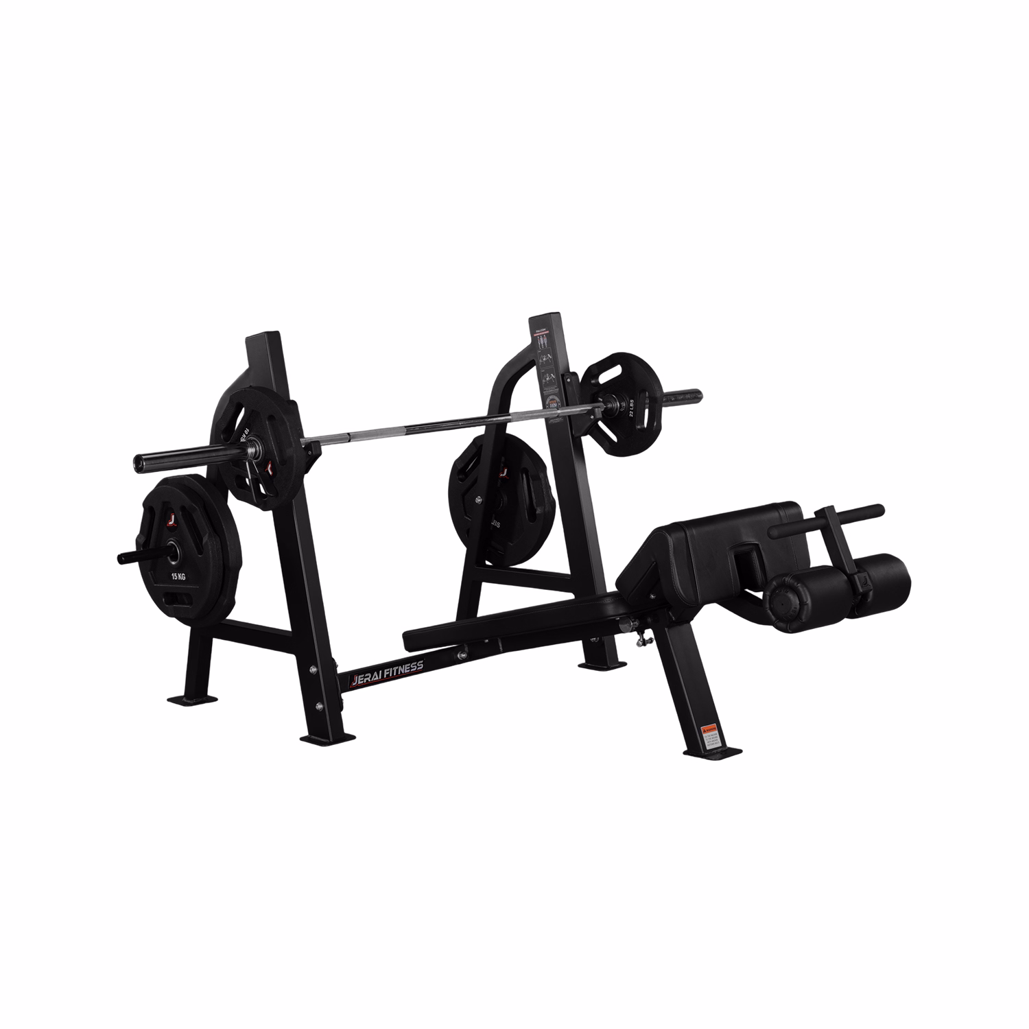 Designed as per the international standards of power lifting. Eight to seventeen-inch bench widths allows free shoulder movement during bench press. Unique roller allows locking of users feet while performing exercise. Forty-six inch bench length allows full stretch of the user's body. Two position replaceable bar hold assembly with heavy-duty stainless steel plate for durability. 15 degree backrest for optimum exercise benefit.