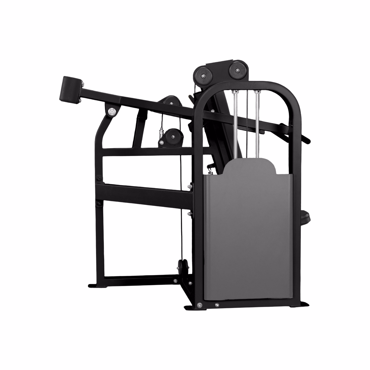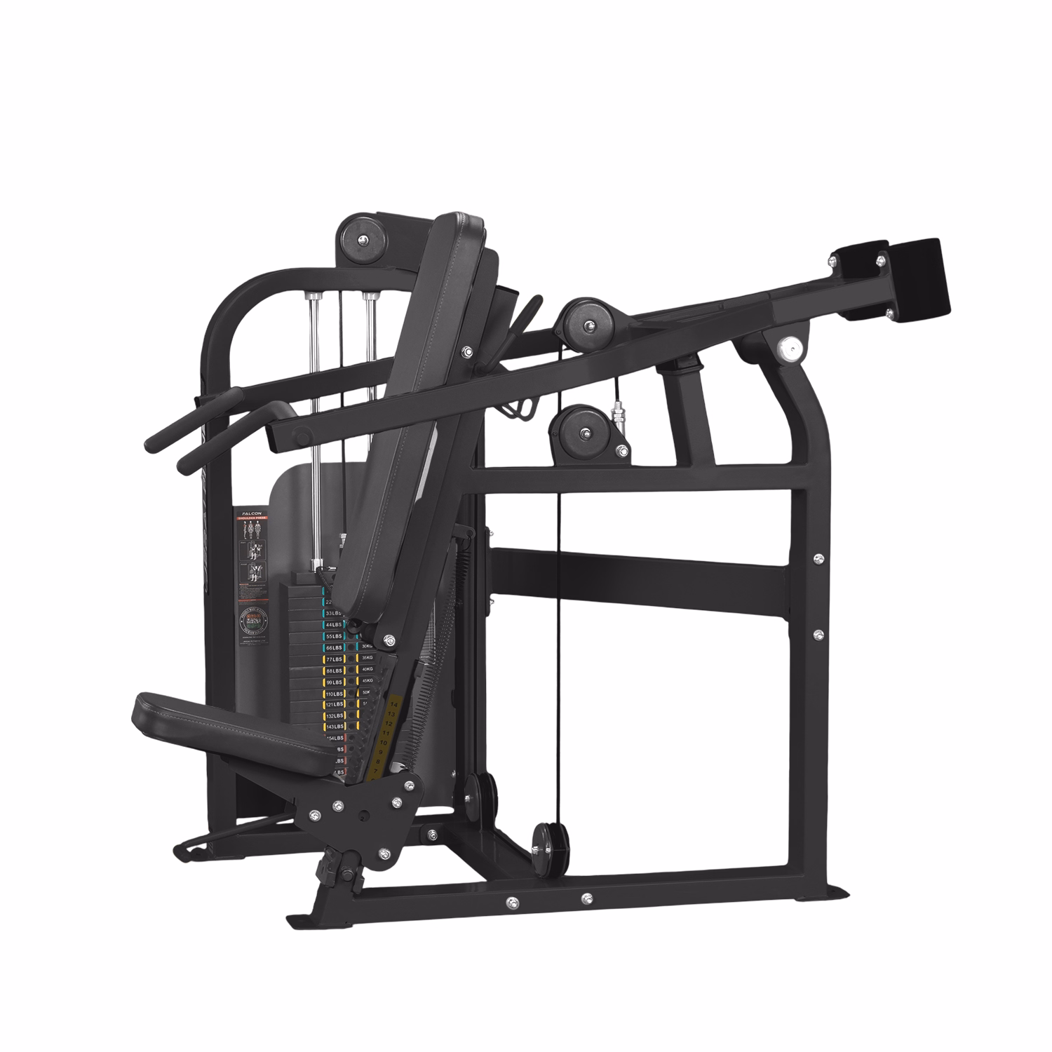 The Shoulder Press machine has dual hand grips for both neutral as well as pronated grips for exercise variation. It aims to recreate the form of a military press but with the advantages of a machine.