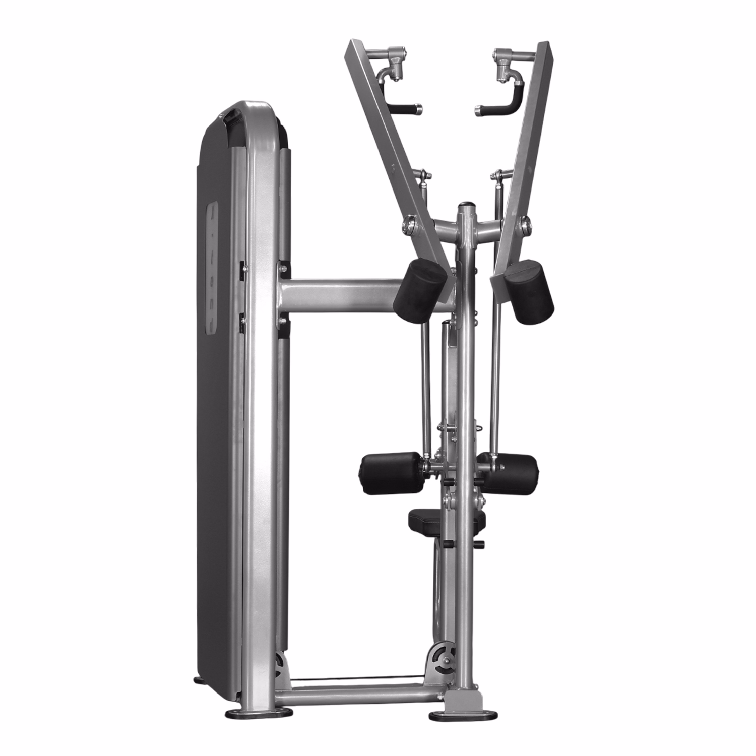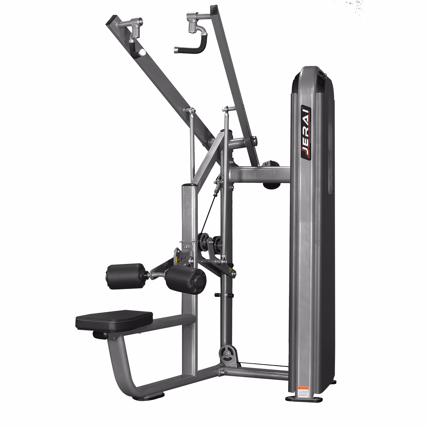 The uniquely designed dual handle simulates the position of the conventional lat bar exercise. A diverging movement accurately targets intended muscle groups. Counterbalanced arms for light starting weight. An adjustable torso pad ensures a stabilized body position. The Jerai Fitness Dual Lat Pull Down provides weight stack upto 220 lbs.
