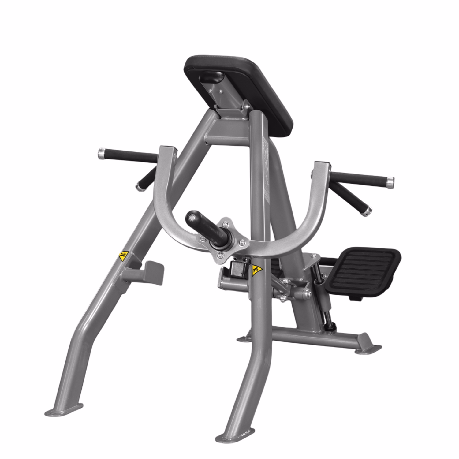 Unique design for training lats and upper back. Chest pad provided to overcome lower back injury. Multi position footplate and hand grips for barbell and neutral position.